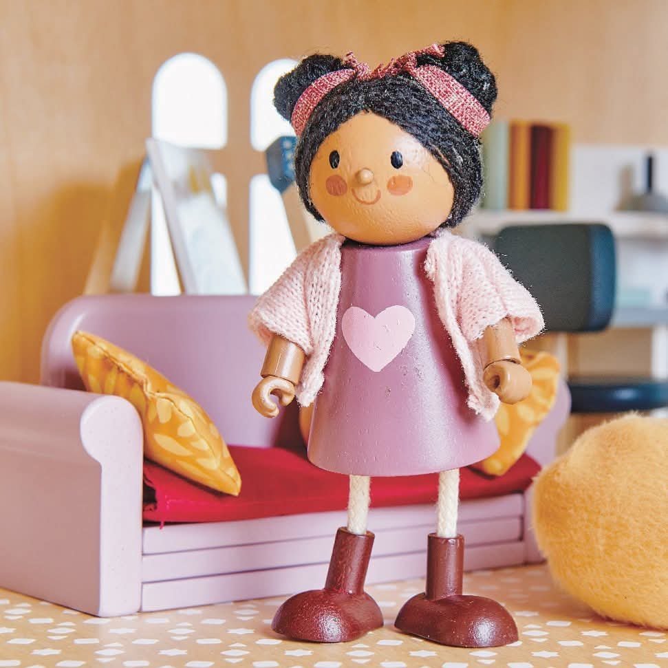 Conoce nuestra colección de muñecos de madera para el juego libre e imaginativo. Se pueden jugar solos o pueden ser el complemento perfecto para nuestras casas de muñecas. Fabricados en madera natural sustentable, con hermosos tejidos y atención al detalle. La muñeca Amelia incluye un bello gatito a quien ama cuidar.