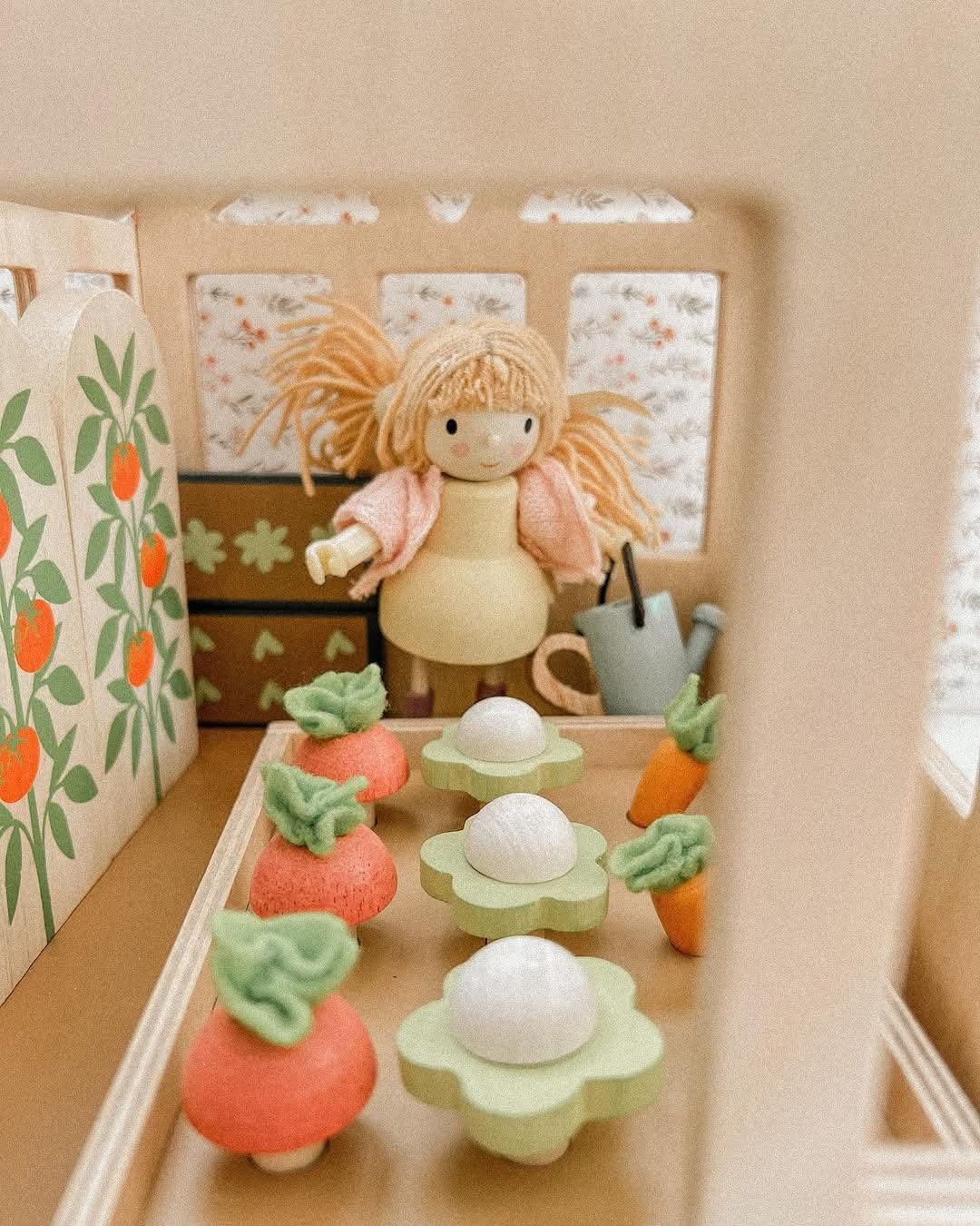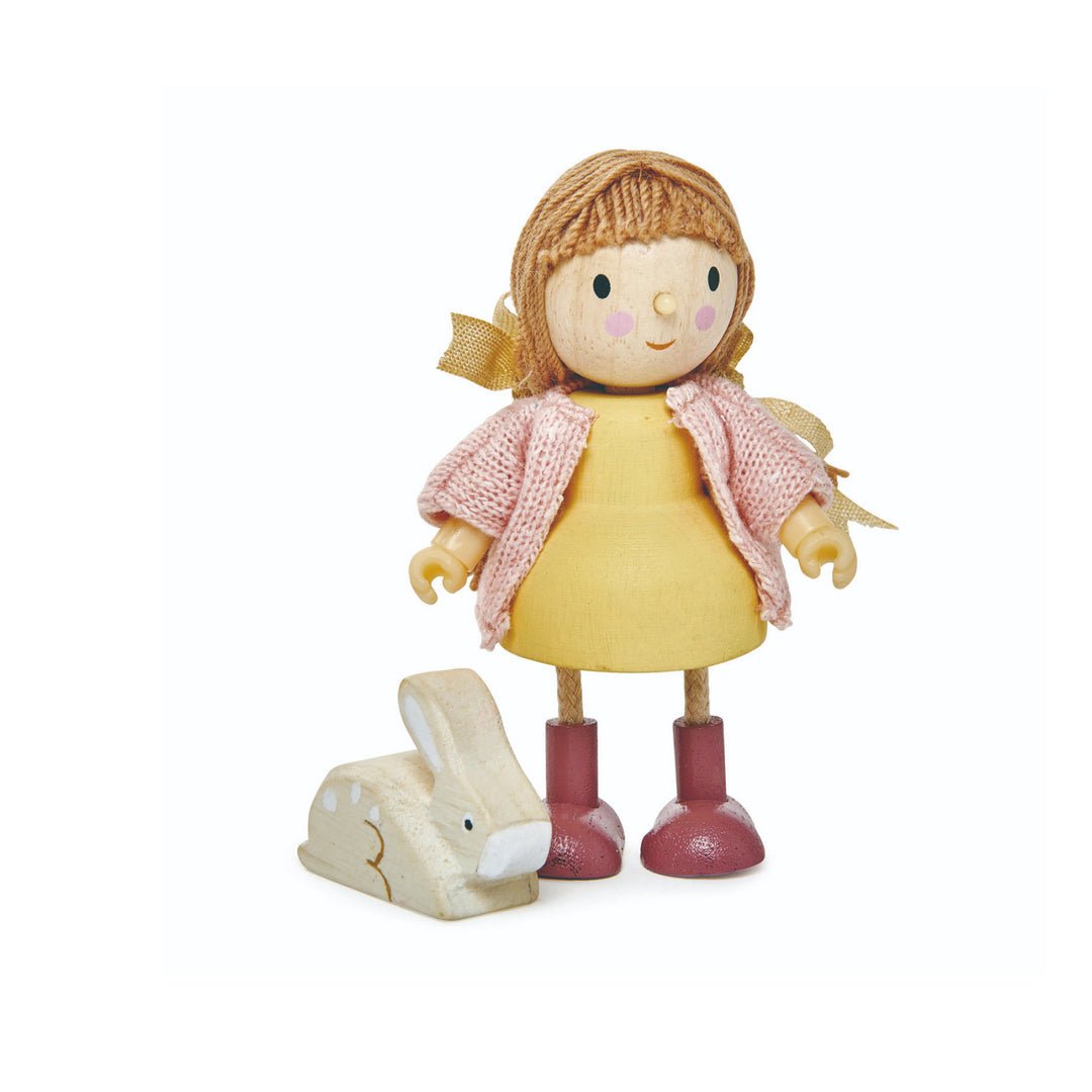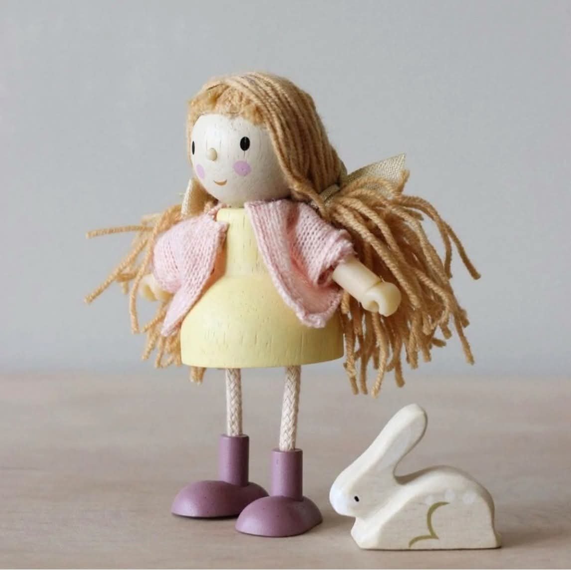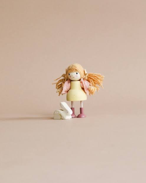 Conoce nuestra colección de muñecos de madera para el juego libre e imaginativo. Se pueden jugar solos o pueden ser el complemento perfecto para nuestras casas de muñecas. Fabricados en madera natural sustentable, con hermosos tejidos y atención al detalle. La muñeca Amy incluye un bello conejo a quien ama cuidar.